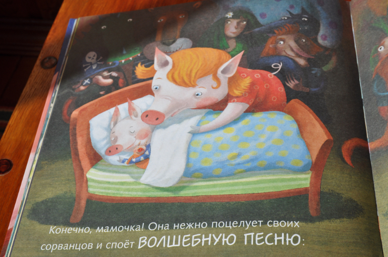 Тосю-Босю мы не читали, а вот братья поросята Витек и Митек стали нам друзьями (ведь их прообразами наверняка являются маленькие ребята, которые тоже любят шалить и проказничать). Текста минимум. Для меня это книжка-картинка. Можем читать ее долго, зависая на каждой странице. По началу, когда сын шел ее читать, брал с собой игрушечный водный пистолетик и помогал поросятам справиться с драконом, львом, пиратами и морковным бароном)) В общем, я не пожалела, что у нас появились "Два поросенка"!