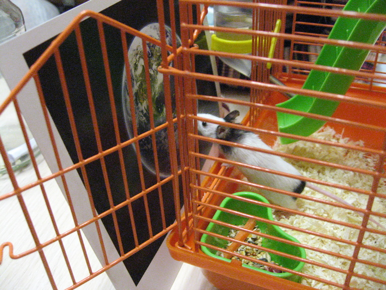 Принесла для Мыха целый пакет космических фотографий, терпеливо приставляла их к клетке изображением к домику, где пряталась мышка,, и дождалась! Мых вылезла из домика и подошла к картинке, тщательно её обнюхивая. "Фотографируй скорей!" - вопила довольная Сонь, уже показывая мышке другие картинки.