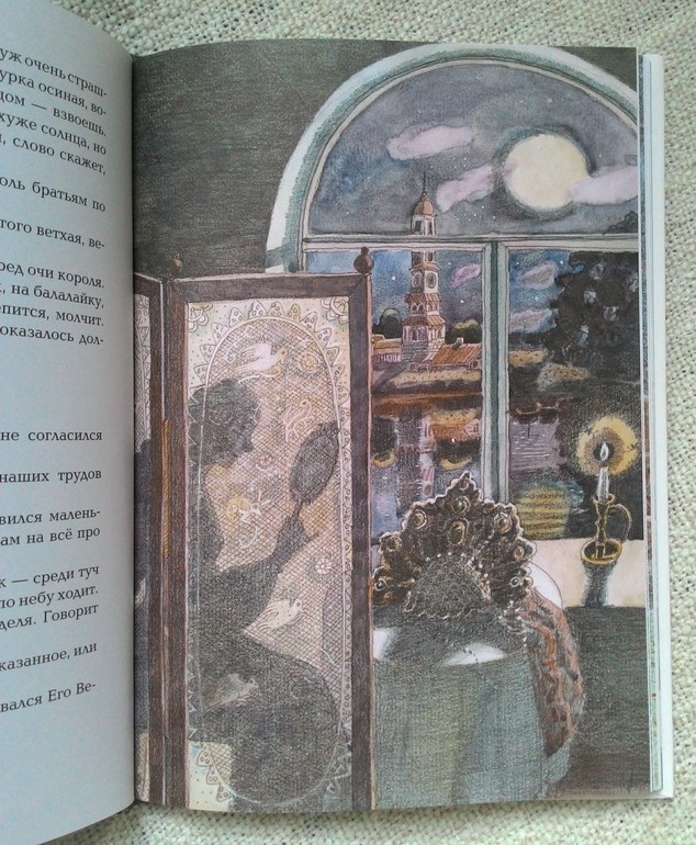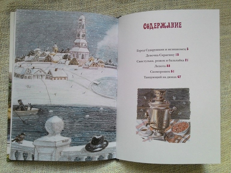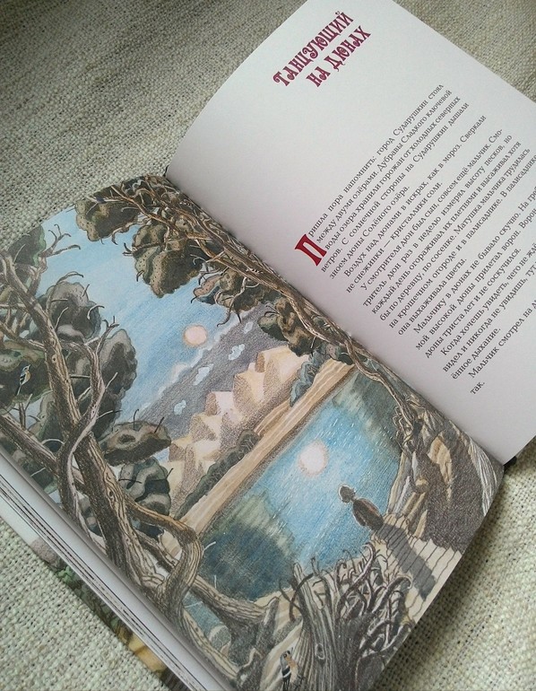 Впечатлений от нее - масса. Сложная в прочтении, полная на мотивы и образы (не без затрагивания религиозной темы), сильная содержанием, с необыкновенно подходящими иллюстрациями в спокойных тонах Анны Гошко. Удивительно, что Владислав Бахревский - автор современный. Язык повествования приближен к тому, уже подзабытому народному. И текст читается лаконично, и слова эти старомодные, и имена чудаковатые переносят читателя в дивный город Сударушкин с первой страницы.