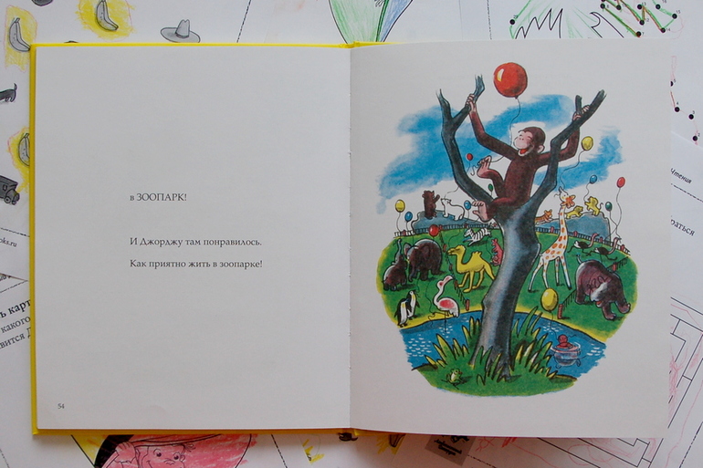 Еще иногда стали почитывать «Любопытного Джорджа». Осенью пробовали читать и первую книгу, и про велосипед, но не очень захватывало, а тут пошло.