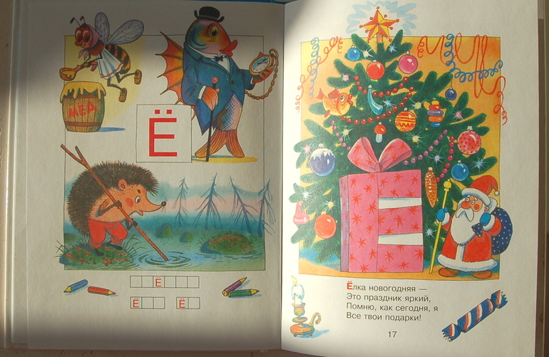 В очередной раз проснулся интерес к изучению букв, сами из всех азбук на полке выбрали «Азбуку сказочную» Юрия Энтина от Самовара, только ее и смотрели зимой. Много сказочных героев на каждую букву, хотя половина нам пока не знакома.