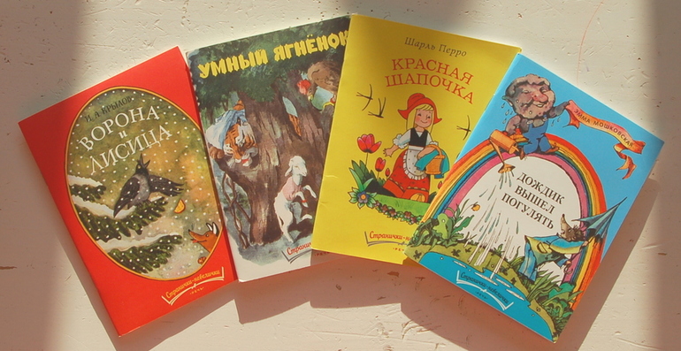 Вдруг заиграли у нас книжки-малышки. Куплено их было около десяти штук еще осенью, были даже прочитаны по паре раз, но так они и стояли грустили в коробочке. А тут дети сами просили их почитать, потом сами пересказывали и вообще включали их в свои игры. Среди купленных малышек некоторые оказались с идеями околошкольного возраста, например, «Трудное положение» и «Потихоньку-понемногу» Погореловского. Суть некоторых была не совсем ясна - скороговорки. Но остальные пришлись к душе. Самые любимые вот: