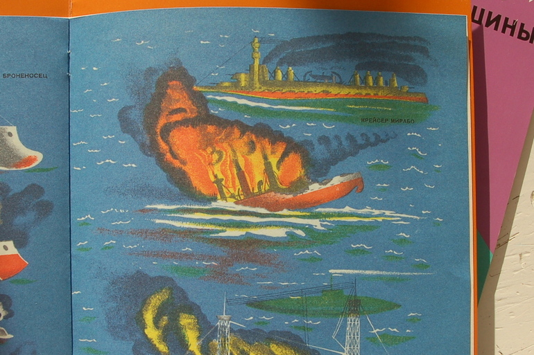 Интересный комплект для тех, кто интересуется историей. В нем шесть книг про корабли, автомобили, самолеты и воздухоплавание. Я даже подумываю купить комплект про город. В книгах детей заинтересовали названия техники и особенно картинки со взрывами.