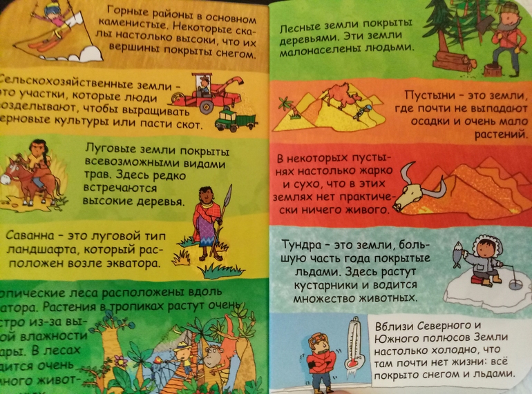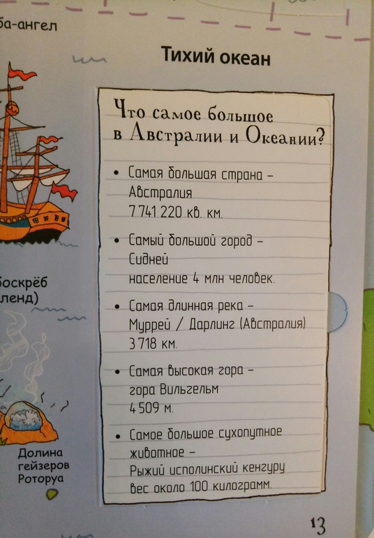 Конечно,это не полноценная энциклопедия по географии. Но такая книга с интересными и необычными описаниями, короткими и информативными фактами и занимательными элементами в виде окошек, здесь целых 120 шт, поможет Вам понять, интересуется ли Ваш ребенок географией и нужно ли дальше скупать географические энциклопедии или же переключиться на другое направление) ну и какие то знания обязательно запомнятся)