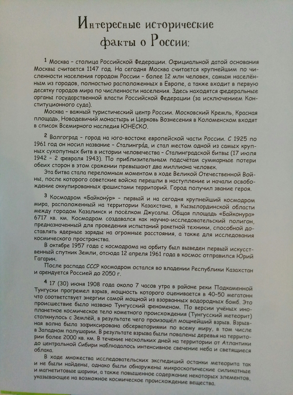И несколько фактов о России, что приятно, все таки книга на русском, и России особое внимание уделено, но подборка фактов немного странная..
