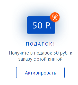 а у меня на 3 книги сработало и 50р и бесплатная курьерская доставка:) сначала активировала одну акцию, потом зашла опять на страничку книги и мне вторую предложили.