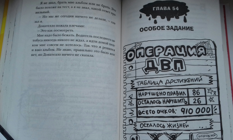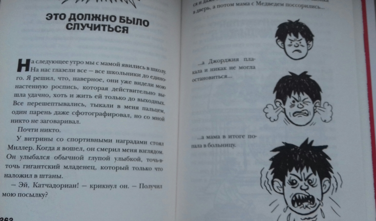 В этом главная фишка книги. Там на каждой странице текст сопровождают рисунки героя из его дневника, ну или просто так: