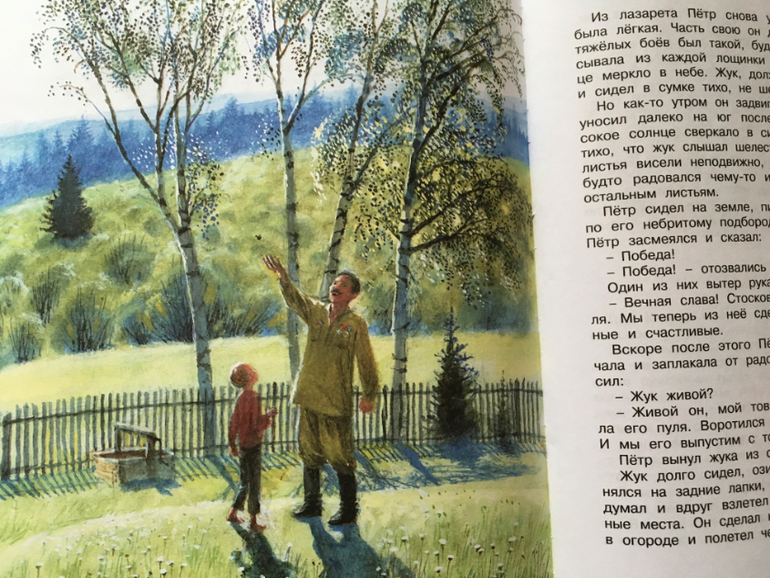 Перечитывали с ней про жука в течение месяца несколько раз, и дочка сама ещё его читала. А в один из вечеров принесла отцу на чтение перед сном и поправляла его монотонный голос, перечитывая с чувством и выразительными интонациями: