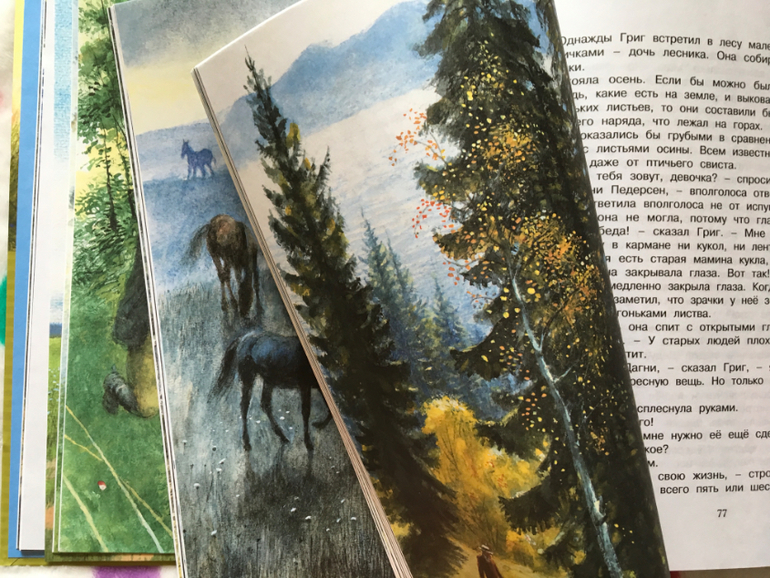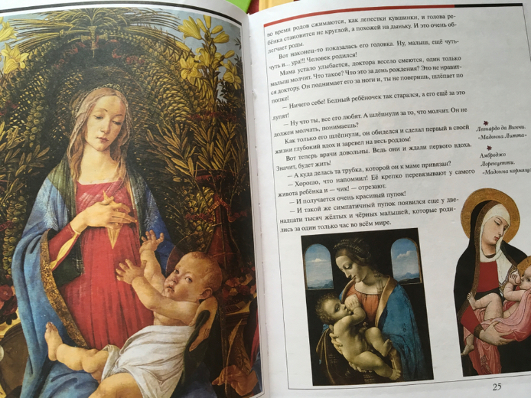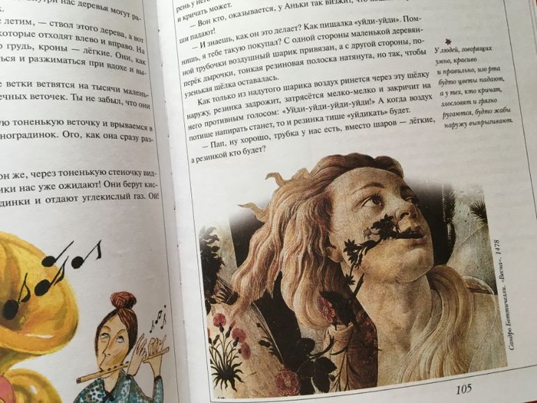 В книге нестандартные иллюстрации. Наряду с обычными рисунками, здесь приводятся картины мастеров, иногда довольно мрачные и непонятные детям. Но с другой стороны, книга особенно должна понравиться поклонникам искусства, так как позволяет заодно ненавязчиво познакомить детей и с этой областью.