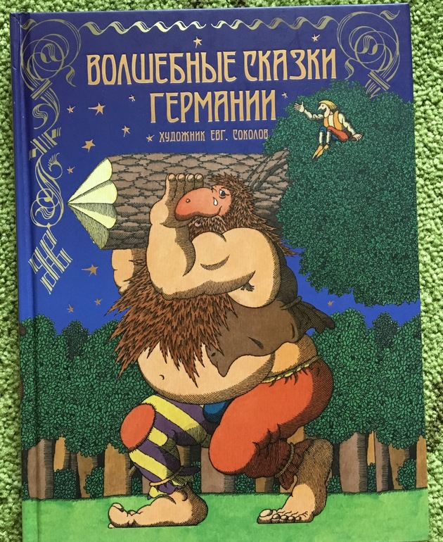 Надо сказать, я поначалу не прониклась энтузиазмом мужа в отношении этой книги, и прошло несколько месяцев, прежде чем муж, наконец, взял ее с полки и положил в необъятную ашанскую корзину)) Объясню, почему я была к ней холодна. Во-первых, к готике в рисунках я отношусь весьма спокойно. А во-вторых, дочка у нас русские-то сказки слушать боится, а уж Братья Гримм и вовсе отличаются мрачностью и страшилками. Хотя, кстати говоря, в детстве у меня была книжка именно с этими рисунками Евгения Соколова.