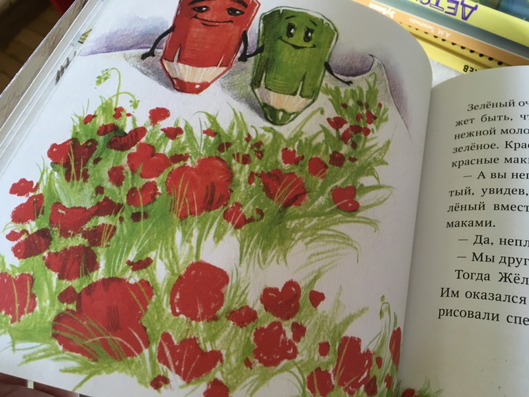 Едва дошли до конца, как Олеся попросила читать сначала. А потом ещё разочек ))) И вот хотя она у меня не художник от слова совсем, и рисует очень мало, а рассказ про карандаши очень понравился. Потом ещё раз сама прочла и спрашивает: