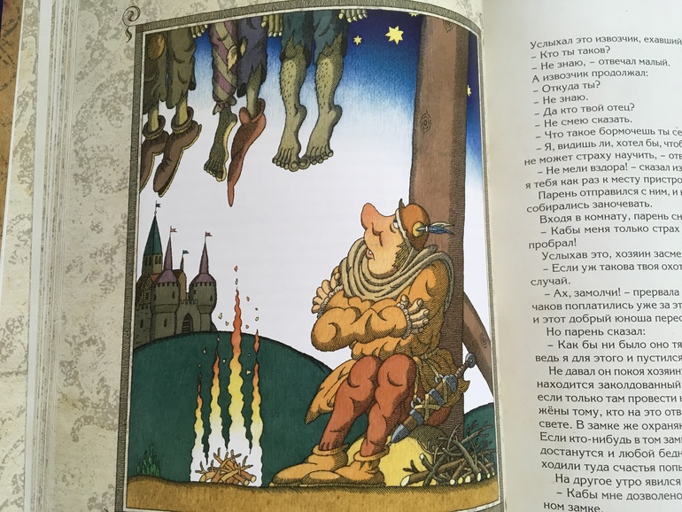 А вчера отец совсем сошёл с ума и прочитал ей "Сказку о том, кто ходил страху учиться". Сказка не для слабонервных, скажу я вам. Здесь вам и висельники, и мертвецы в гробах, и нечисть всякая.