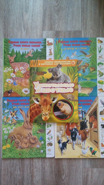 Из серии первые книги малыша наиболее любима и читаема - На ферме. Удивительные животные- любим листать и рассматривать фото животных.
