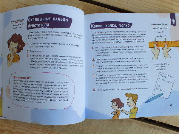 Книга построена на том, чтобы провести кое-какие вполне научные исследования самостоятельно, имея при себе только ручку и бумагу, а порой совсем ничего. Ну, например, возьмем пупочный мусор. Уж больно эта тема Сему взволновала. Вы знаете, что теме пупочного мусора было посвящено целое исследование? Это из серии «Британские ученые выяснили..». Так вот, исследовав три пупка в нашей семье (мамин, папин и свой) мы пришли к такому выводу: мусор присутствует в самом волосатом пупке)) Папином) Кстати, упомянутое в книге исследование пришло к точно таким же выводам: больше всего мусора скапливается в пупках волосатых мужчин)