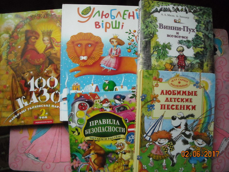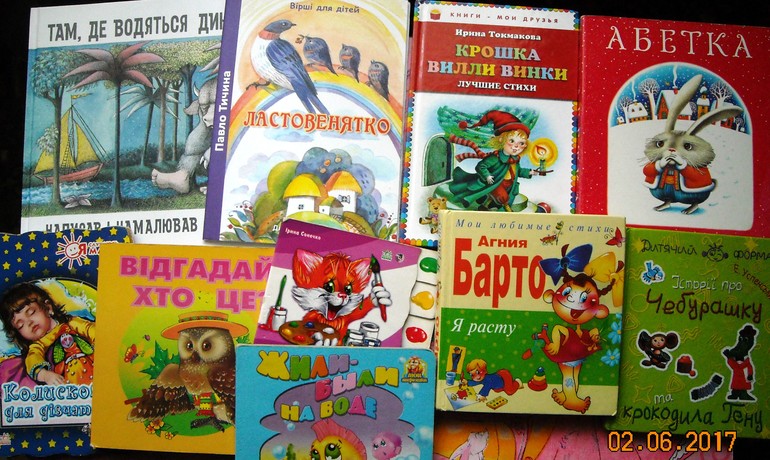 Было несколько на английском. Понравилась новая у нас, но из какого-то старого тиража "Махаона" "Цінь Цвірінь". На каждой страничке - достаточно простые стихи про буквы алфавита, цифры и т. п. Очень удачно для начинающих и удобно. Некоторые выучили. Наткнулась случайно в книжном, цена была смешная.