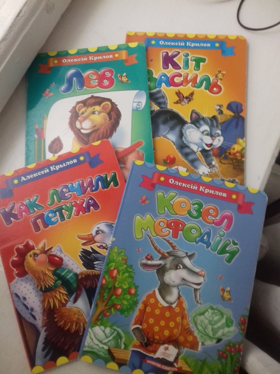 Читаем на двух языках свободно, т.к. детсад и школа предполагаются украинские) так что на каком языке написано не важно, главное чтоб перевод был не корявый😉
