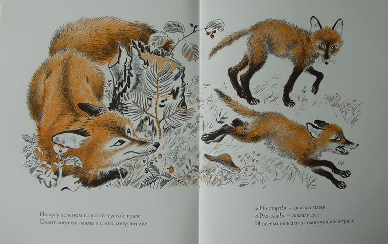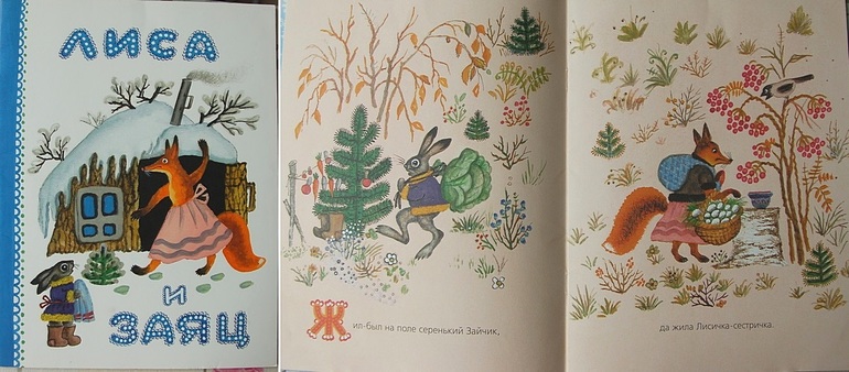 «Лиса и заяц» - одно из любимых изданий моего детства. Обожала книжечку именно в этом оформлении. Ставила по ней спектакли, срисовывала рисунки… А потом однажды она пропала, не иначе как младшая сестра зачитала куда-то. Несколько лет бесплодных попыток поисков, но вот вдруг Речь издает почти точно такую же (у моей обложка была как будто прозрачной плёнкой покрыта). Я счастливая несу ее из Лабиринта и тем же летом неизвестно откуда находится моя )) Чудеса, да и только.