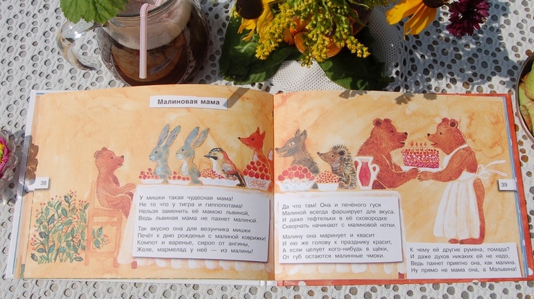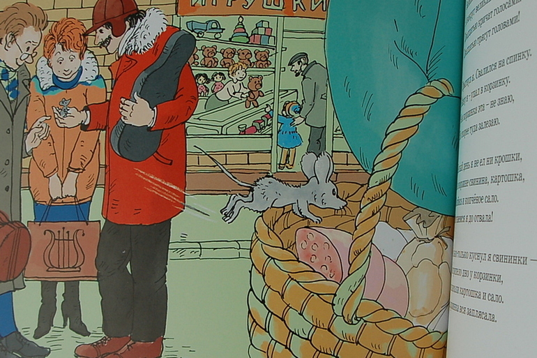 Далеко не все длинные стихотворения дети приветствуют. Часто теряют нить повествования именно в стихотворной форме, если автор пускается в пространственные описания. Но тут на протяжении всей книги (мы читаем ее примерно минут 16) действие настолько динамично, так часто сменяется другим и держит в переживании за мышонка, что книга стала очень любима и цитируема. Самые любимые имена из книги: Маламыш и папа Буроус. Самый любимый момент, как Маламыш прыгает в корзинку с деликатесами, а потом попадает в магазин игрушек. Всегда хохочут над приключениями в магазине.
