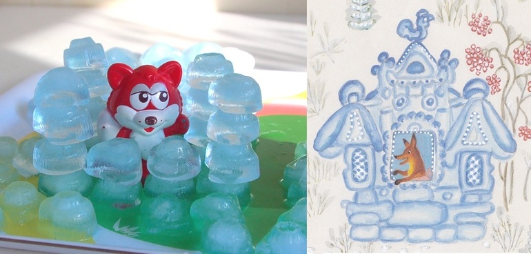 Когда этот дворец таял, то детям всегда было очень жаль лисичку. Поэтому в конце, когда петух выгонял ее из дома, мы селили лисичку в лесу и говорили, что она исправилась.