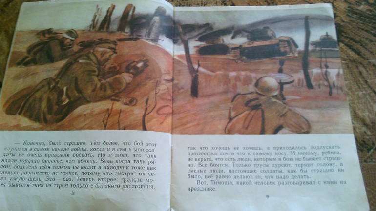 незаметно скручивал детали из подбитых танков и относил его летчику. Но, к сожалению, дочитывать я ее не стала, а на словах рассказала Егорушке придуманную историю, которая могла бы быть. Рассказ заканчивается тем, что фашисты схватили и мальчика, и летчика и обоих расстреляли. Егорушка слишком сильно переживал и радовался, когда я читала о том, как мальчик, подвергая себя опасности, пробирался в лес к летчику. Волновался, чтобы его не увидели фашисты и повторял:"Какой смелый мальчик, да мама?". Не смогла я ему прочитать, что его расстреляли. Но, когда Егорушка будет постарше, обязательно возьмем эту книгу и прочитаем до конца.