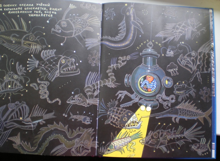 сын очень серьезно "Про водолазов. И батискаф. Тааааак, тута нет"