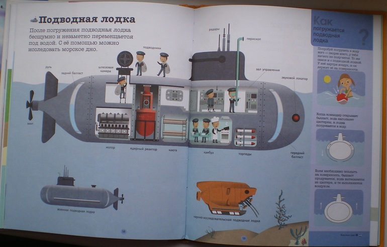 В книжке Про машинки водолазов нет, нашли подводную лодку.