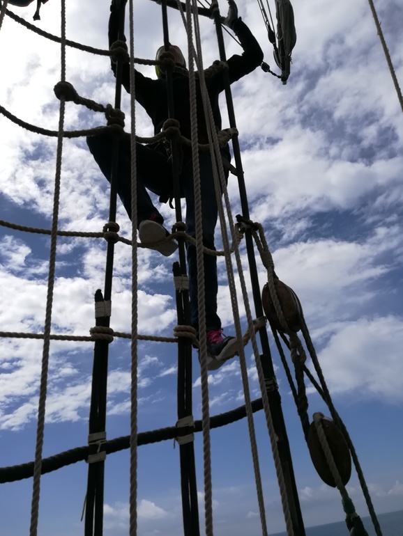 Море манит, но оно и опасно. Аврал! И все бегут наверх, на палубу. Парусный аврал - и все встают на свои места, готовые собирать паруса, а потом быстро хватают карабины, и вперёд, по вантам на паруса, собирать их ещё плотнее, ведь с морем не шутят.