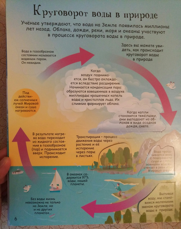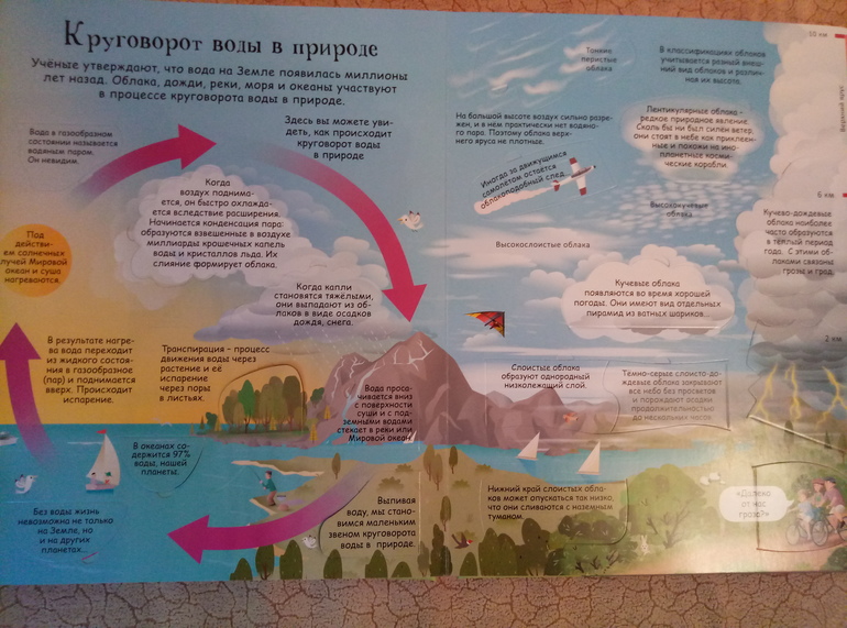 Как же долго я вокруг нее ходила, думала, мечтала) После изучения их же Атласа были небольшие сомнения) и вообще думала, что и рано,и непонятно, что внутри.. но мысль о том, что о круговороте воды точно ребенку надо будет показывать и рассказывать, сделала свое дело и я ее купила. Ну а если честно, так мне ее хотелось, что решила, что уже проще купить)) Покажу Вам все развороты, что Вы точно уже знали, что же там внутри.