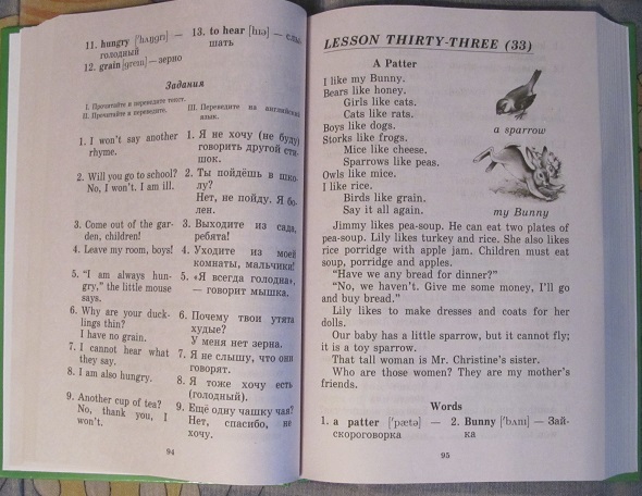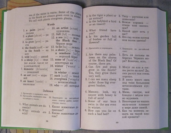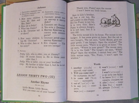 Добавлю развороты Английского для детей. В этом издании бумага тонкая, газетная. Рисунки не цветные. В Лабиринте видела другое издание, с розовой обложкой, там иллюстрации цветные, а содержание по-моему такое же.