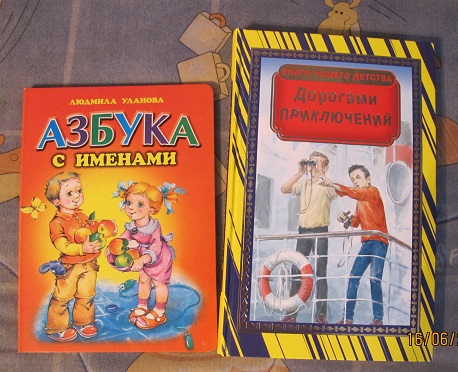 Еще подарки от Лабиринта. Порадовала книга Дорогами приключений. В Азбуке с именами стихи с именами на все буквы алфавита (почти все). Соня расстроилась, что на С не Соня, а какие-то американские имена - Стэнли и Стефан вроде. )) Книга картонная.