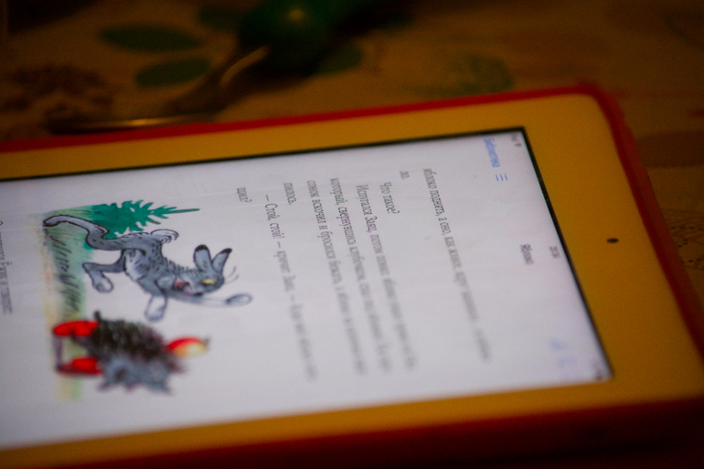 Для младших хороша - небольшая книжечка. Надо еще про Мамонтенка Фуфа прочесть, но его таскать с собой неудобно - большая тонкая книжка, помнется, а дома не до него (((