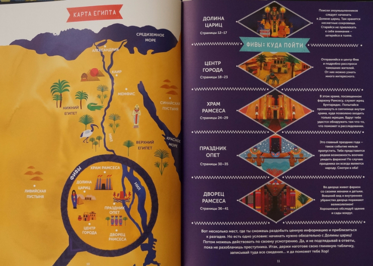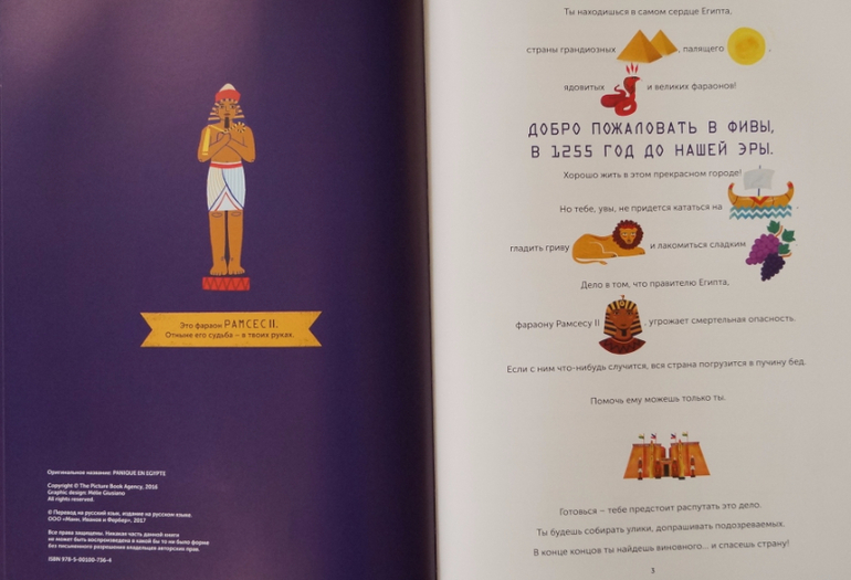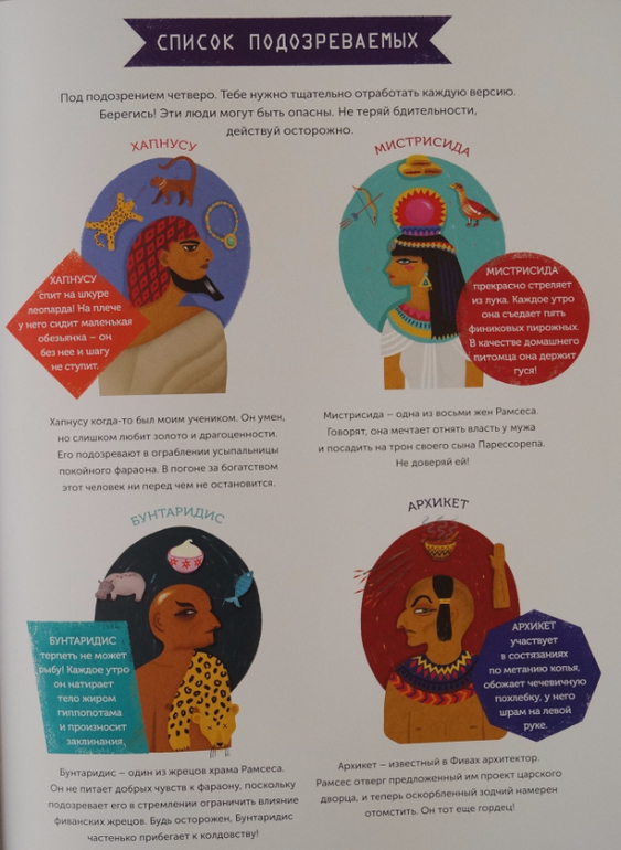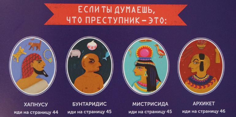 Читателям необходимо вычислить злоумышленника, который хочет убить фараона. Нужно быть внимательным. Шутка ли, от верного ответа зависит жизнь Рамсеса II.