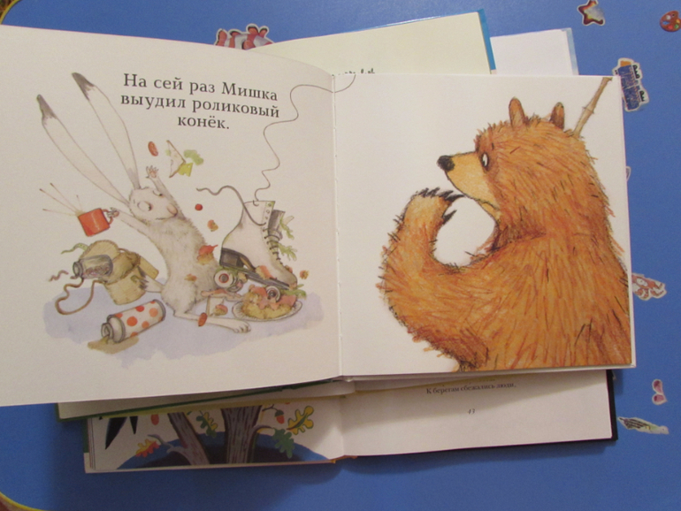 У книги компактный размер + большое количество историй (29 историй). Все истории из обычной жизни деток: поход к врачу, «протечка», про зубки, про день рожденье и новый год и т.д.
