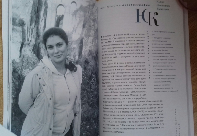 Какой у книги минус. Условный, конечно. Сведения об авторах и их произведениях постепенно устаревают. Например, у Юлии Кузнецовой уже не двое, а трое детей; а у Тамары Михеевой не трое, а четверо. Ну и количество написанных произведений, естественно, больше. Но от этого никуда не уйдешь, жизнь-то движется!