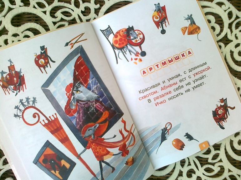 Кто такая Артмышка? А Гуляшка? Дикокрол? Елемонах? Этими вопросами Соня засыпАла всякого, входящего в наш дом). Её так увлекла "Зубака" Тилипмана, что она не остановилась и после того, как разгадала все забавные ребусы в этой книге. Она придумывала их сама пачками. Причём в голове, не записывая. В самом начале над Артмышкой она, конечно, потрудилась, прежде чем поймала ниточку. Зато потом щёлкала их как орешки. И ей это было ужасно интересно.