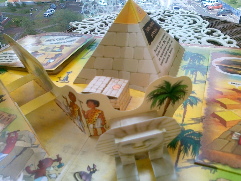 Ещё большой популярностью у Сони этой весной пользовалась Энциклопедия "Фараоны" из серии "Загадочный мир прошлого". Она небольшая. Но шикарная, с многочисленными кармашками, панорамными иллюстрациями. И достаточно информативная.
