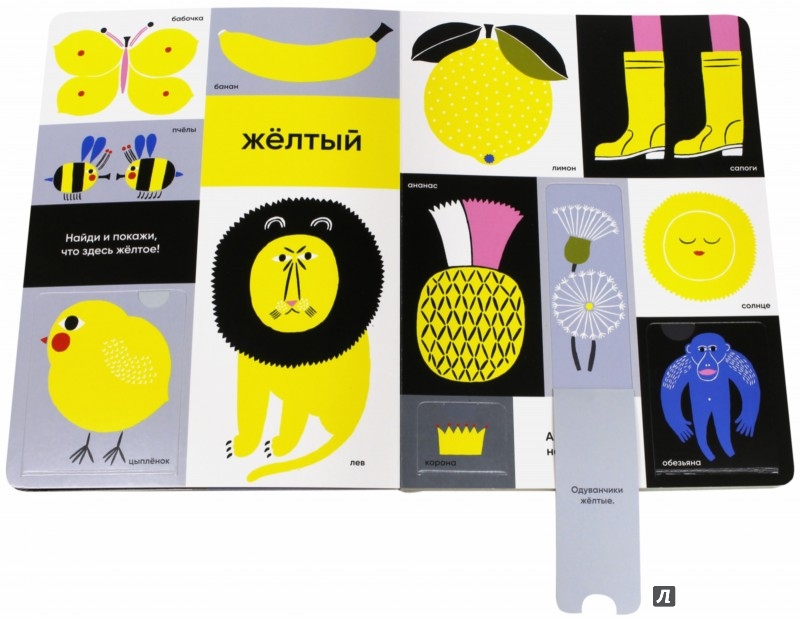 С этой яркой и необычной книжкой особенно интересно изучать Цвета! За окошками-клапанами на каждой странице прячутся разноцветные герои и сюрпризы, а ответы на забавные вопросы и задания легко найдет даже малыш. Страницы и клапаны в ней сделаны из прочного картона, так что книга выдержит много прочтений, просмотров и игр. Стильные иллюстрации и задания нарисовала Айно-Майя Метсола, финский дизайнер и иллюстратор, которая становится все популярнее во всем мире.