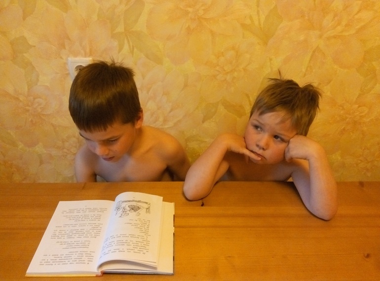 3. В июне читал "Буратино" - нравится, но сам читать не будет ни за что. Надо говорить: "Федя, иди читать". Иногда до самой ночи не может приняться за обязательный ежедневный минимум - 1 главу. Потом за десять минут читает и довольный собой идет спать :)