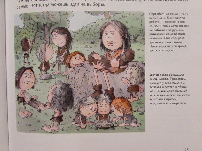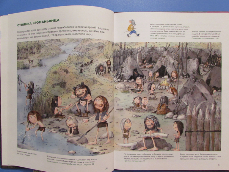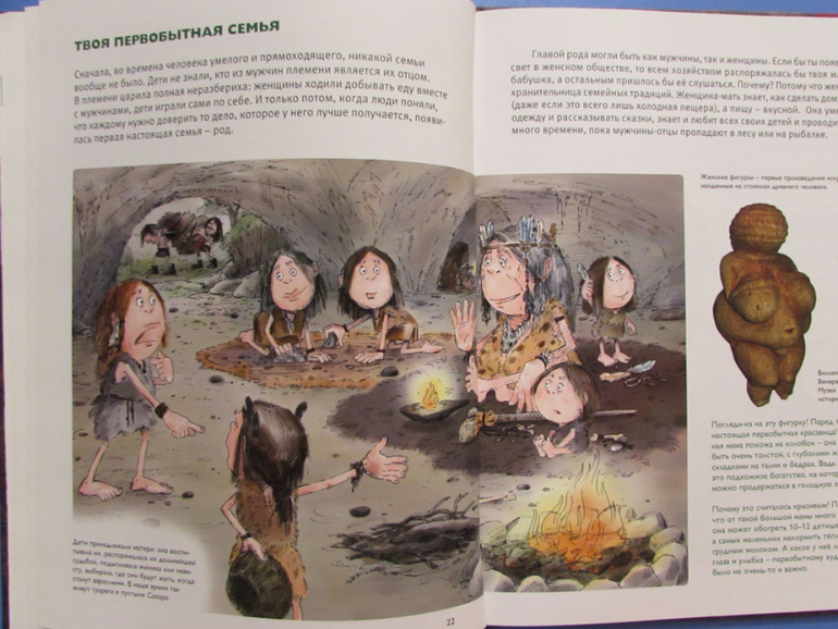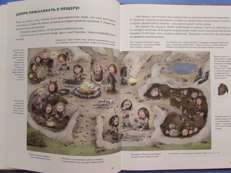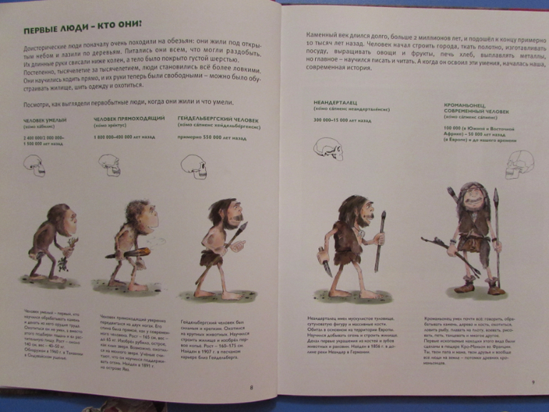 Из книги ребенок узнает, где жил первобытный человек, как охотился на мамонта, из чего первобытные люди шили себе одежду, какие орудия изготавливали, как отмечали первобытный Новый год.