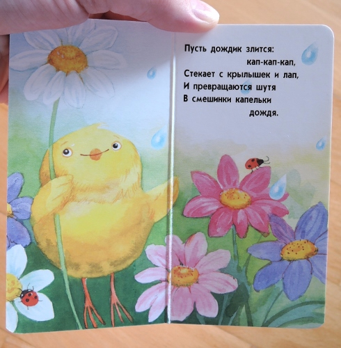 Малюсенькая книжка-картонка про цыпленка-оптимиста в стихах.