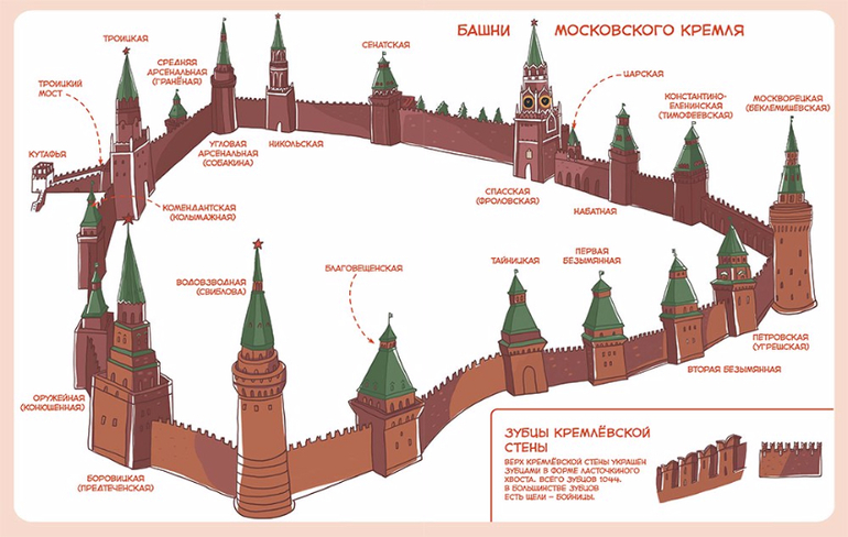 Чевостик познакомит читателя с названиями всех башен Кремля, расскажет, что находится за его стенами, а что есть на Красной площади.