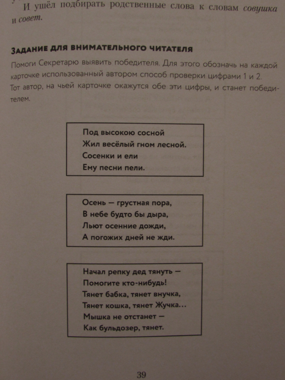 В конце главы расположены различные задания по правилам: задания для остроумного читателя, задания для знатока детских книг и т.д. В конце книги даны правильные ответы на эти задания.