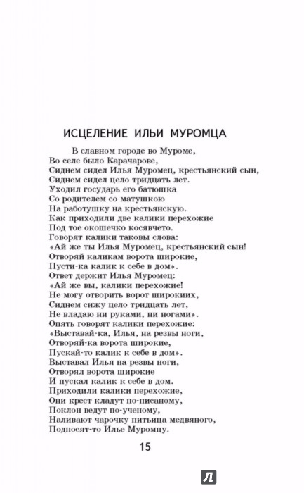 В книгу включены былины о главных героях русского эпоса - Илье Муромце, Добрыне Никитиче, Алеше Поповиче, - а также Киевского и Новгородского циклов, которые изучают в начальной школе и 7 классе.