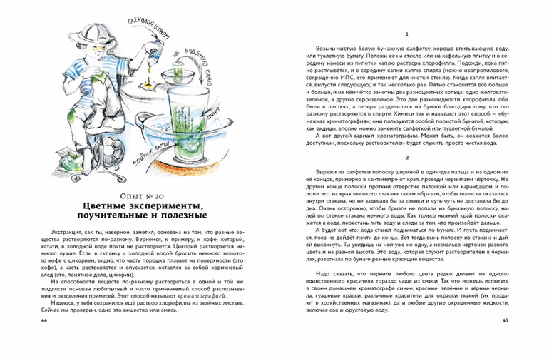 Бесцветная жидкость неожиданно краснеет, из растений получаются акварельные краски, сахар светится и превращается в "мёд", обычная свечка становится мылом, на бумаге появляются невидимые ранее надписи - чудеса, да и только!