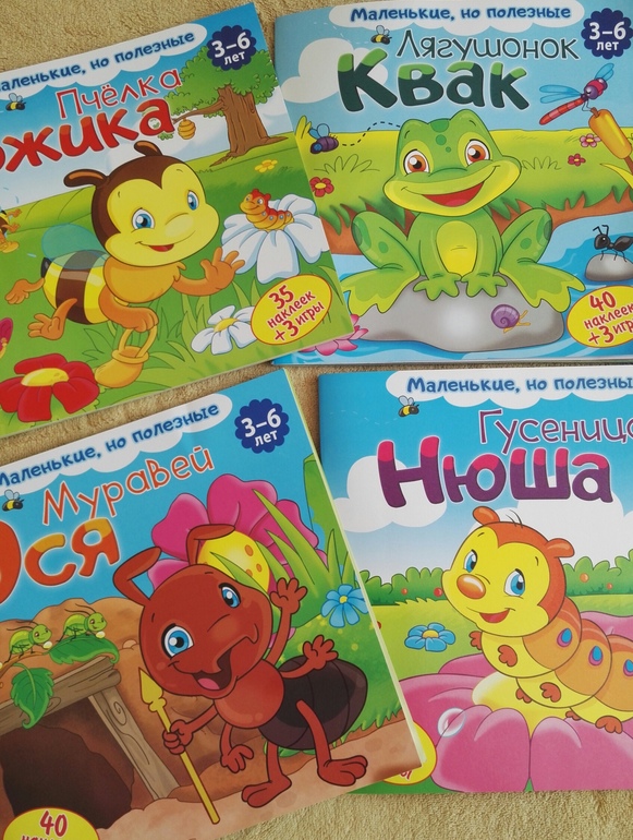 Мышку летучую и паучка пролистала, купила - как будто посложнее там и картинки и текст, как на вырост немного. Стрекозу вообще не стала брать, не понравилась, да и решила, что перебор уже, хватит)