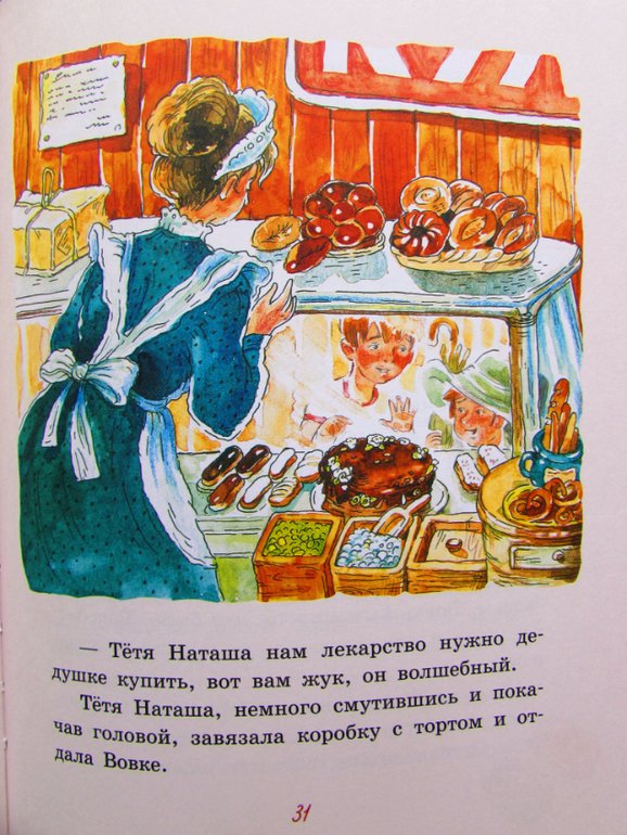 Дети из всех сил стремятся помочь выздороветь любимому дедушке: моют маминым шампунем кота Мурзика, наводят «стиральную» чистоту в квартире (одновременно стирают мамину шубу, коридорный коврик, папин шарф и чучело совы), готовят бутерброды с колбасой и вареньем, покупают деду самое лучшее лекарство - торт и учатся считать до «малвилона».