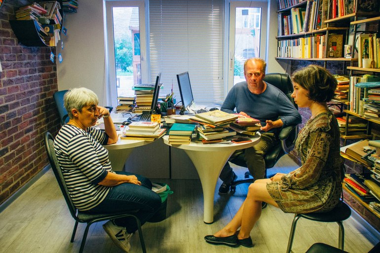 Здесь в "мозговом центре" издательства мы были окружены книгами, развязывающими язык и побуждающими задавать массу вопросов, и людьми, которые на наши вопросы с готовностью отвечали ))