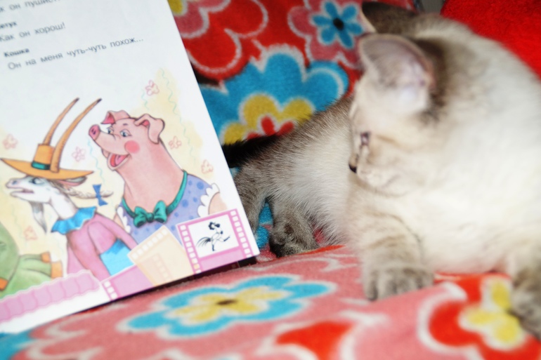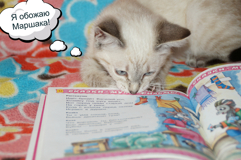 И собственно история, как Муська читала книжку "Кошкин дом":