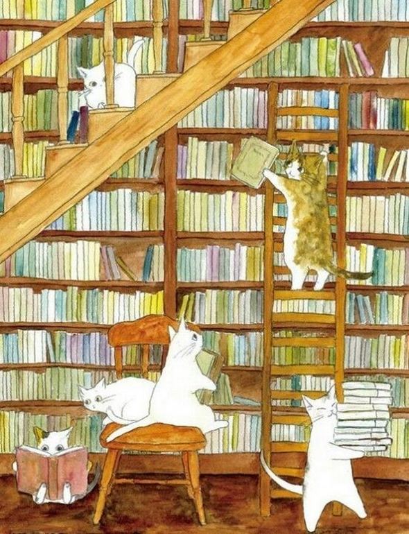 Открыла наш флешмоб Елена с галереей книжных кисок, своих и библиотечных. Спасибо, Елена, за открытие и с дебютом вас во флешмобах) Совершенно необычная матрёшка! Наверняка, имеет успех у детей. Очаровательные статуэтки и рукодельный чёрный кот. Ну, а серая морда с многочисленным потомством - прелесть, так и охота потискать)