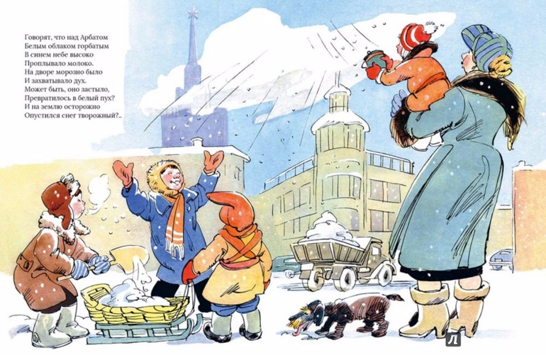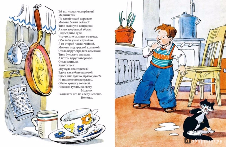 Вот беда: прямиком из кастрюли Убежало молоко! Как же его разыскать? Говорят, его видели в небе над Арбатом, в мчащейся по городу цистерне и, кажется, в молочной…
